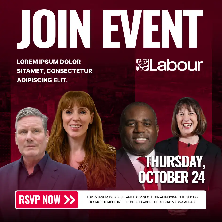 Launch your winning Labour campaign with 500+ professional templates designed for UK elections and selections. Used by successful Labour members and groups across Britain to create compelling materials that engage voters and build campaign momentum.